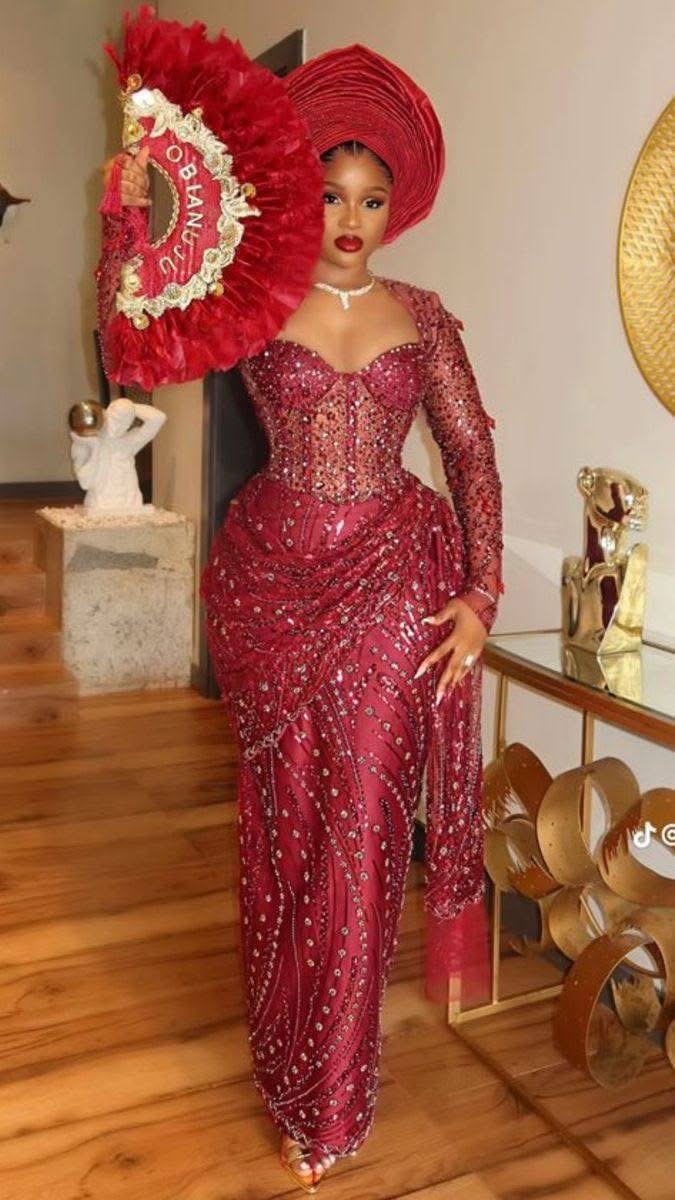 Burgundy Beaded Wrap-up long-sleeve dress for traditional wedding