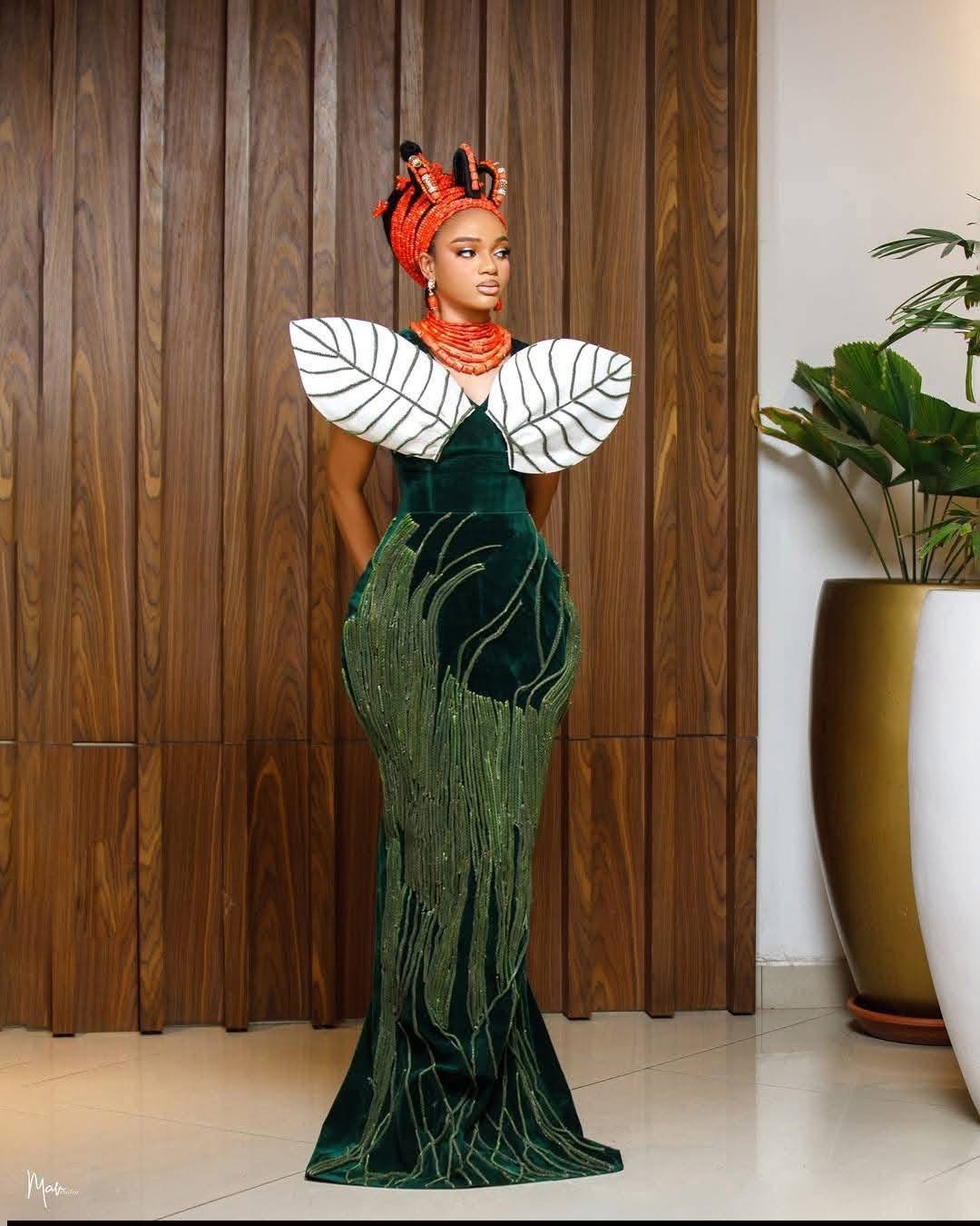 Beaded Swede Green Luxury dress for Traditional Wedding